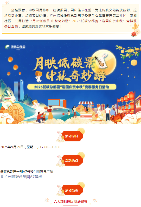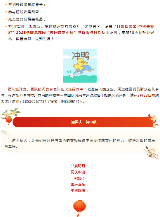 活动预告 ▏2025低碳总部园“迎国庆 贺中秋”党群服务日活动 作者:admin 发布于:2025-09-23