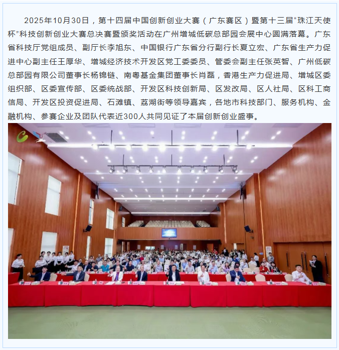 第十四届中国创新创业大赛(广东赛区)暨第十三届“珠江天使杯”总决赛在园区圆满闭幕 作者:admin 发布于:2025-10-31