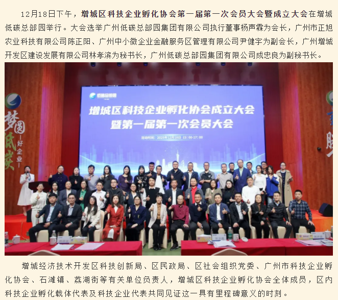 喜报|增城区科技企业孵化协会正式成立 作者:admin 发布于:2025-12-19